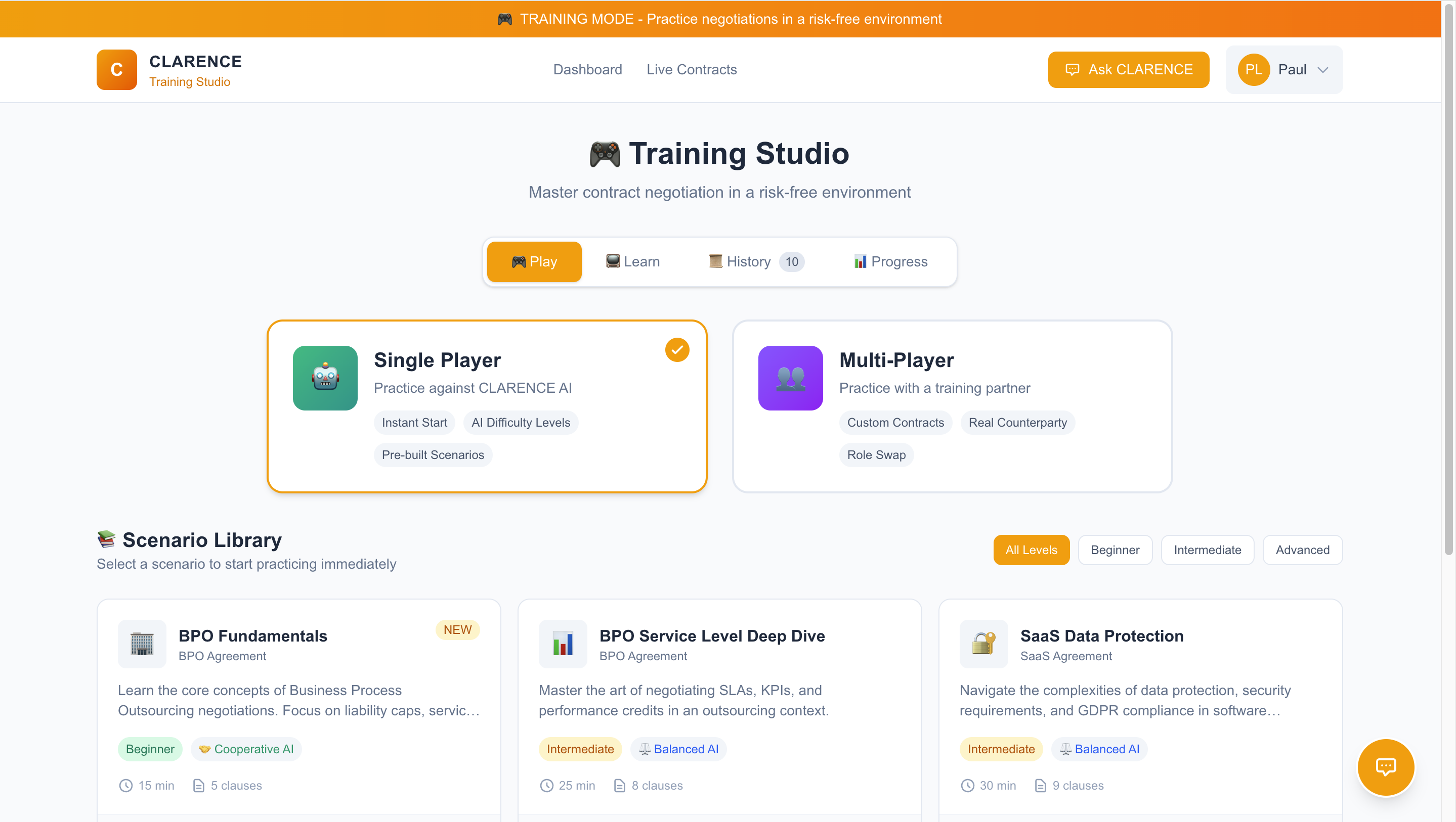 Experience CLARENCE risk-free. Build your team's negotiation skills before taking on high-stakes contracts.
